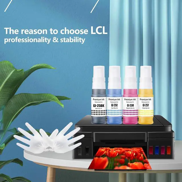 Dye InkLCL GI-25 ink is dye ink which have a low diffusion coefficient, resulting in a layered and brightly colored print. In addition, its surface tension properties make it easy for the ink to be absorbed by the surface of the paper, so that the print remains glossy, dye ink is a complete composite solution, not easy to clog the print head.