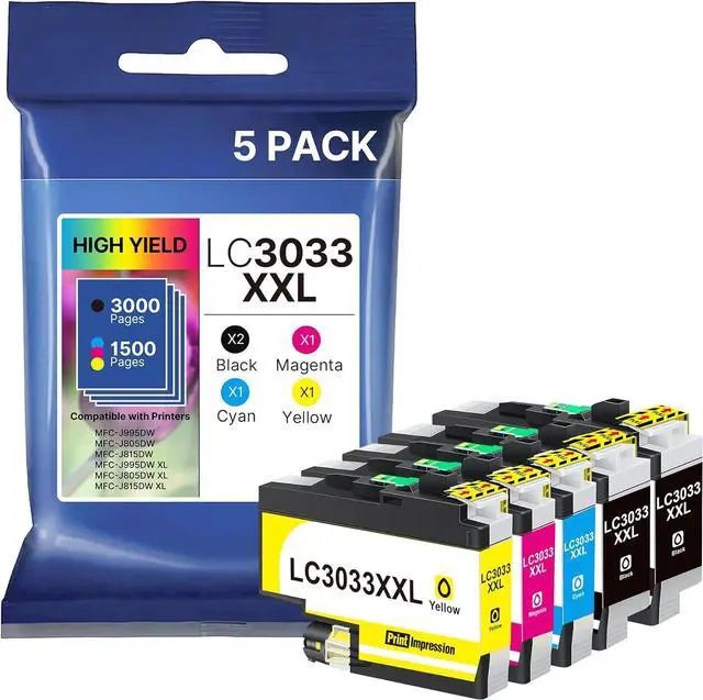 Product Name: LC3033XXL Ink Cartridges compatible for Brother LC3033 BK/C/M/Y Ink Cartridges LC3033XXL Brother LC3035 Ink Cartridges with Upgrade Chip (5-Pack, 2 Black, 1 Cyan, 1 Magenta, 1 Yellow)
