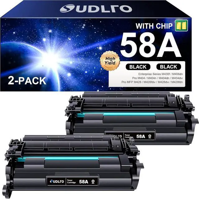 High performance products: 2 new 58a for hp toner cartridge. These 58a compatible with hp toner cartridge are alread installed with chips, No need to transfer orginal 58A or 58X toner chip to them.
