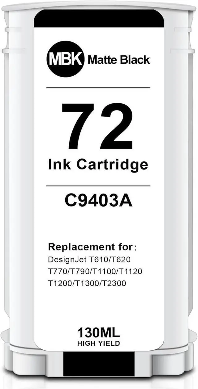 72 Matte Black Ink Cartridge C9403A (1-Pack, 130ML) Work for HP DesignJet T610 T620 T770 T790 T795 T1100 T1120 T1200 T1300 T2300 Printer