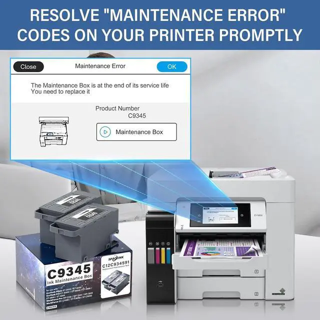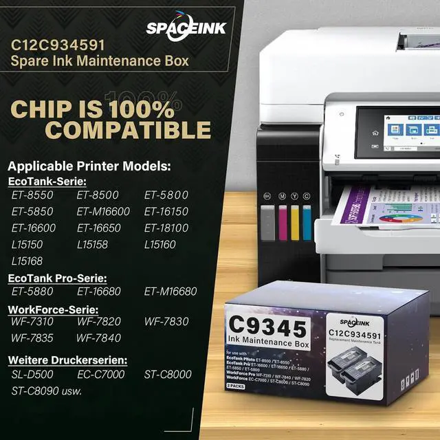 Compatible Printers: The C9345 Ink Maintenance Box works with ET-8550 ET-8500 ET-5800 ET-5850 ET-16600 ET-16150 ET-16650 ET-18100, WorkForce Pro ET-5880 ET-16680 ET-M16600 ET-M16680 WF-7840 WF-7835 WF-7830 WF -7820 WF-7310 WF-M4119 WF-M4619 EC-C7000 ST-C5000 ST-C5500 ST-C8000 ST-C8090 wait.