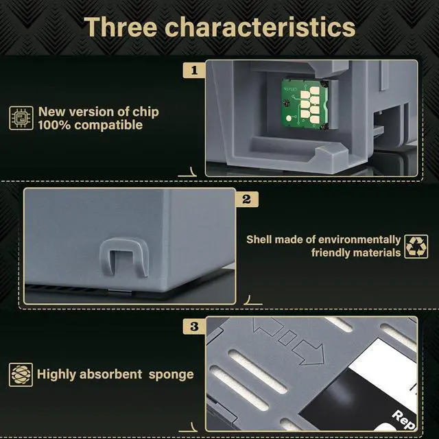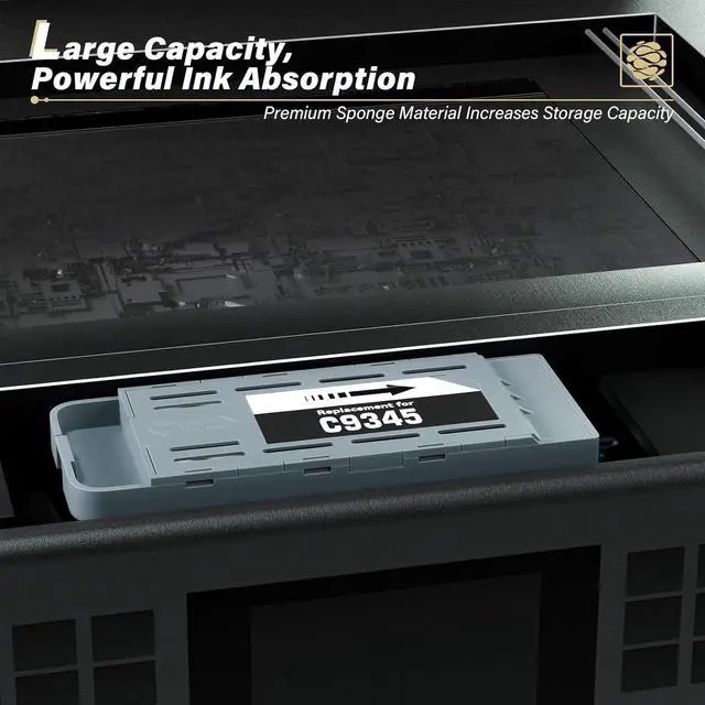 Stable and reliable: The C9345 waste tank features a super absorbent sponge and strong PE structure that helps absorb 20% more waste ink, as well as leak-proof, stable chips.