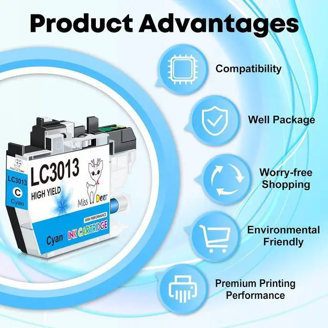 : Miss Deer LC3013 compatible replacement ink for Brother LC3013 LC3011, 100% compatibility, performance, print quality and higher page yield, as the same quality as the originals.