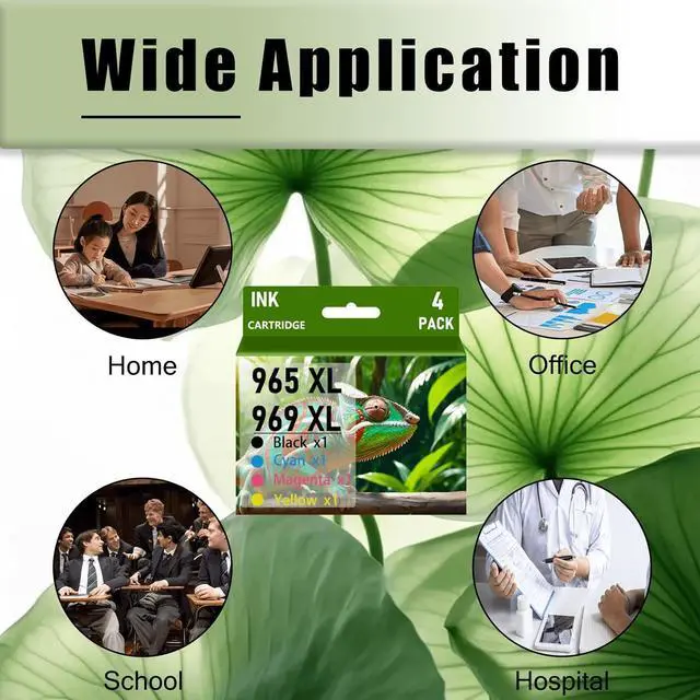 Larger capacity ink cartridges: 965 969 XL ink cartridges have higher ink capacity, 76ML for black, 26.5ML for color(With 5% coverage on A4 paper)