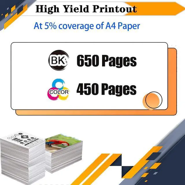 High Capacity: Our Ink Cartridge with reliable printing lifespan --- 650 Pages per Black cartridge, 450 Pages per Cyan / Magenta / Yellow cartridge (5% coverage on A4 paper)