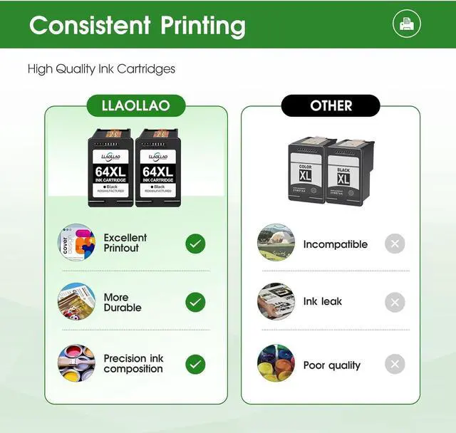 Our 64xl black ink cartridge replacement for hp 64 ink through strict quality inspection to bring you reliable printing effect