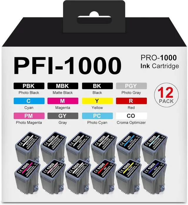 Pack Contains12 Pack PFI-1000 ink cartridges (MBK PBK C M Y R GY B PGY PC PM CO) .