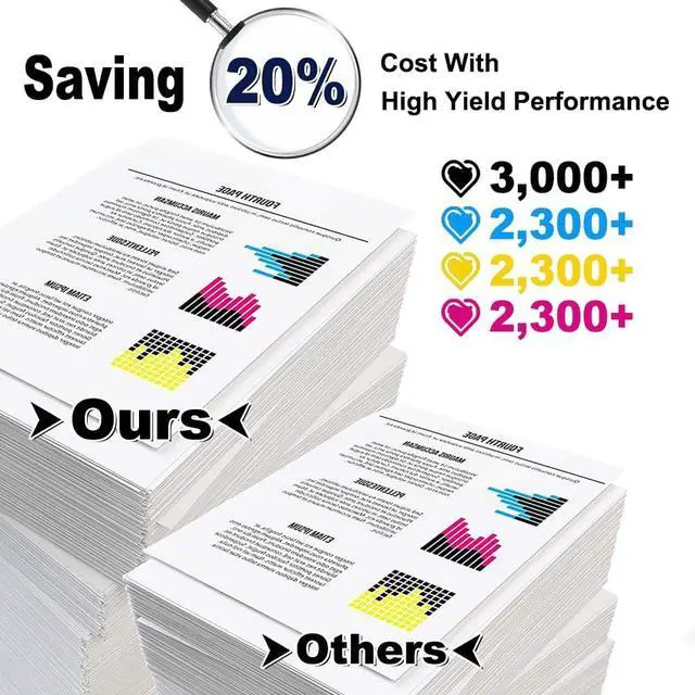High Page Yield: 20% More Page Yield than others, 3,000 Pages Per Black Toner Cartridge and 2,300 Pages Per Color Toner Cartridge