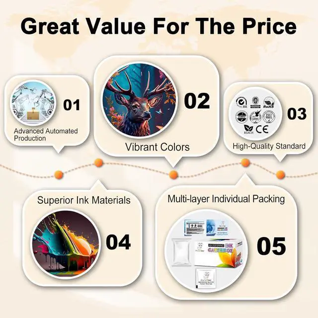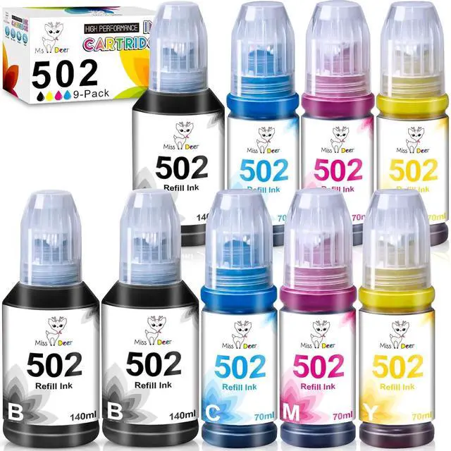 Efficient Printing Performance Miss Deer 502 ink refill bottles can be used for copy paper and photo paper. Specially formulated 502 ink refill make sure to print crisp documents and life-like photos. Sharp and smooth, Vibrant color, Prevents clogging.