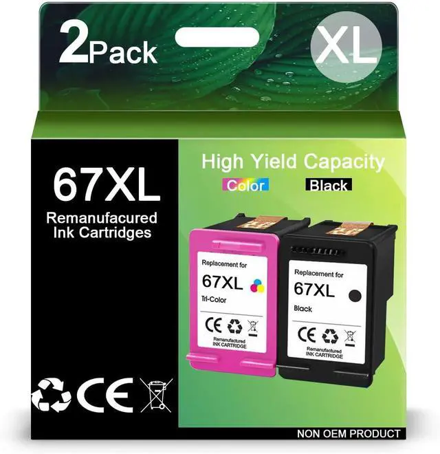 Box Includes: 2 Pack Remanufactured 67XL ink cartridges (1 Black, 1 Tri-Color)