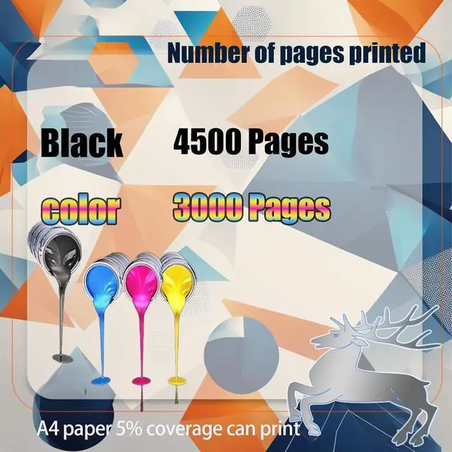 High-yield printing: Each black Toner Cartridge can print 4500 pages (based on 5% coverage of A4 paper), so you can enjoy batch printing without frequent replacement of Toner Cartridge.Color can print 3000 pages.