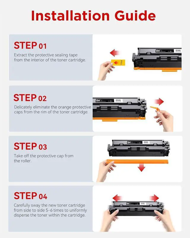 • Complete 4-Pack Set: 054H toner includes 1× Black, 1× Cyan, 1× Magenta, 1× Yellow 054H compatible toner cartridgesready to deliver crisp, vivid prints right out of the box.