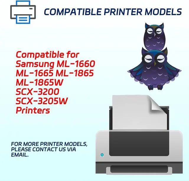 Easy Installation and Compatibility - Our Toner Cartridges are designed to be easily installed in a variety of printers. Guaranteeing compatibility with your specific printer model. Compatible with Samsung ML-1660 ML-1665 ML-1865 ML-1865W SCX-3200 SCX-3205W Printers.