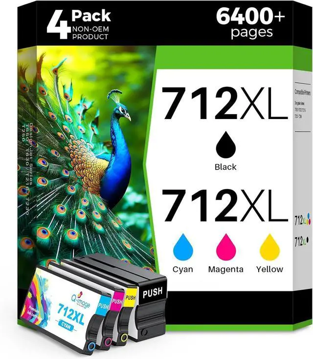 Package contents: 1 x Black 712XL, 1 x Cyan 712XL, 1 x Magenta 712XL, 1 x Yellow 712XL, 4 712xl cartridges in total