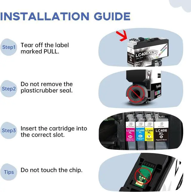 Latest Upgraded Chip: Our LC406XL ink cartridges are enhanced with the latest chip technology, ensuring seamless compatibility with Brother printers such as MFC-J4335DW, MFC-J4335DW XL, MFC-J4345DW, MFC-J4345DW XL, MFC-J4535DW, MFC-J4535DW XL, MFC-J5855DW, MFC-J6555DW, MFC-J6955DW, MFC-J5955DW, and HL-JF1. Enjoy hassle-free installation and reliable printing