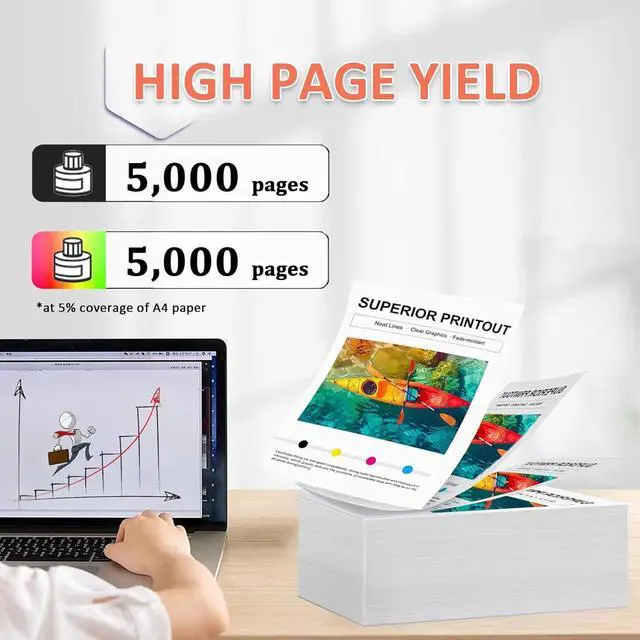 High Yield5,000 pages per 730 black ink cartridge & 5,000 pages per 730 color at 5% coverage of A4 paper