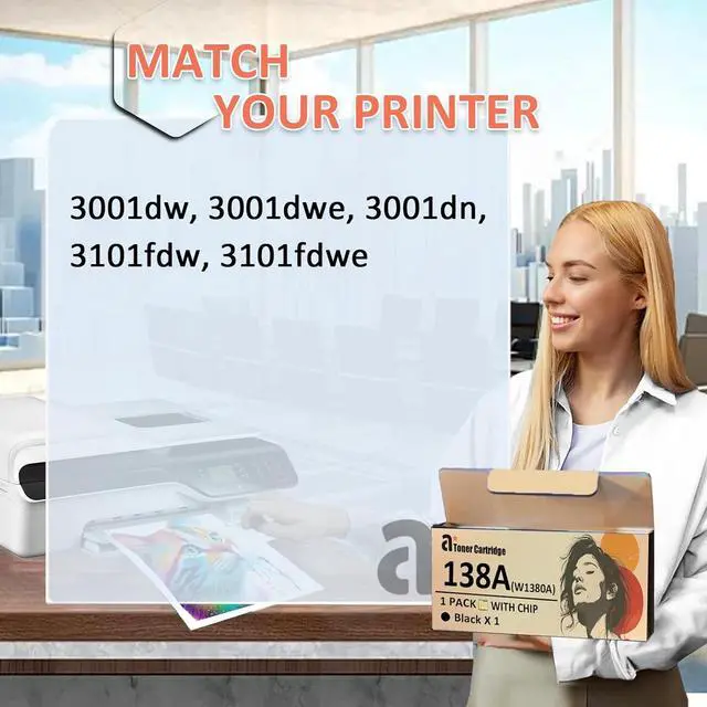 Compatible Printers The 138A toner cartridges compatible for HP LaserJet Pro 3001dw 3001dwe 3001dn MFP 3101fdw 3101fdwe printers