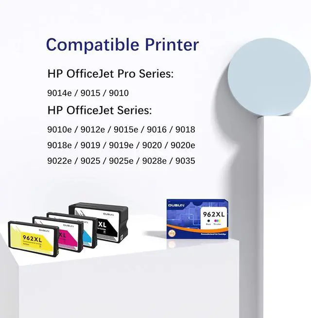 Ousun 962xl remanufactured ink cartridges are compatible with the HP e+ printers, and supports ink level display.