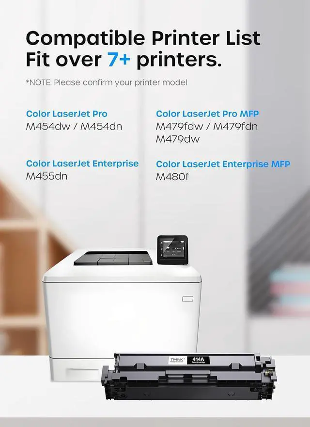 Compatible Printers: Timink 414A (W2020A W2021A W2022A W2023A) 414 414X compatible toner cartridge replacement for HP LaserJet Pro LaserJet Pro M454dn, M454dw, MFP M479dw, MFP M479fdn, MFP M479fdw Printer
