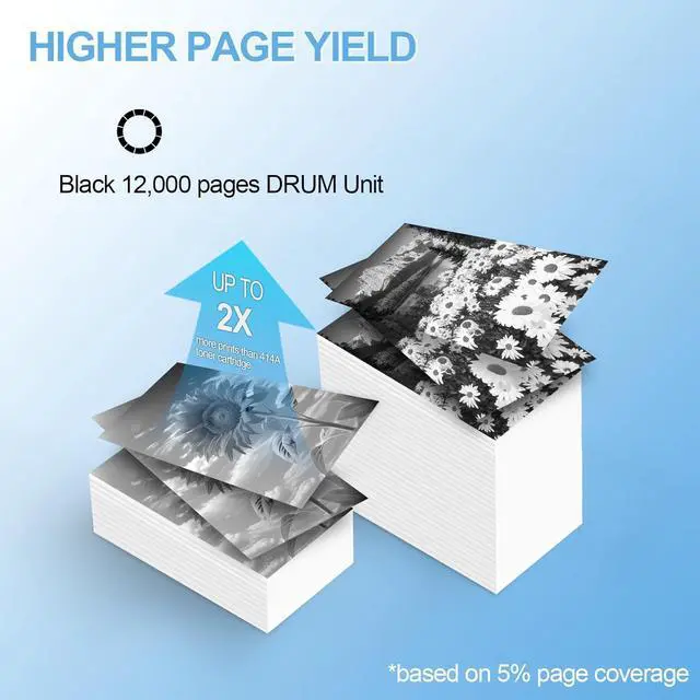 Page Yield : 12,000 pages per CF219A black Drum Unit at 5% coverage of A4 paper.