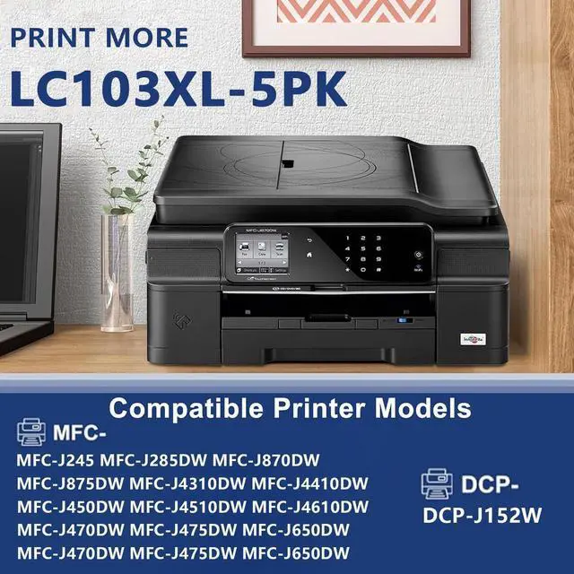 The replacement for ink cartridges lc103 is a high-quality compatible ink cartridge designed specifically for the printer. This ink cartridge is perfect for various settings such as schools, offices, homes, and hospitals, making it versatile and suitable for a wide range of printing needs. With its precise engineering, the replacement for lc103 ink cartridges for printer ensures optimal performance, delivering vibrant and long-lasting printouts every time. It is capable of producing sharp and clear text documents, as well as vivid and detailed color prints, guaranteeing professional-looking results. Installing the replacement for LC103XL ink cartridge is hassle-free, thanks to its user-friendly design. Simply insert the cartridge into the designated slot in your printer, and you're ready to start printing. Plus, this ink cartridge is equipped with a smart chip that allows your printer to accurately monitor ink levels, so you'll never run out of ink unexpectedly. In addition to its exceptional performance, the lc103 ink cartridges for printer 5 pack is also cost-effective. It offers a high page yield, ensuring you get more prints per cartridge, which translates to lower printing costs in the long run. This makes it an ideal choice for those who need to print in large volumes without compromising on quality. When it comes to reliability and compatibility, the LC103 ink cartridge is second to none. It has been rigorously tested to ensure seamless compatibility with the DCP-J132W DCP-J152W DCP-J172W DCP-J4110DW DCP-J552DW DCP-J752DW MFC-J245 MFC-J285DW MFC-J4310DW MFC-J4410DW MFC-J450DW MFC-J4510DW MFC-J4610DW MFC-J470DW MFC-J4710DW MFC-J475DW MFC-J650DW MFC-J6520DW MFC-J6720DW MFC-J6920DW MFC-J870DW MFC-J875DW printer, guaranteeing smooth operation and minimizing the risk of damages or malfunctions. Choose the LC103XL ink cartridge for your printing needs and experience outstanding print quality, cost-efficiency, and compatibility. Whether you're printing important documents in an office, educational materials in a school, personal projects at home, or medical records in a hospital, this ink cartridge will meet your expectations and deliver impressive results.