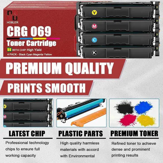 CRG069 black, CRG069 cyan, CRG069 yellow, CRG069 magenta replacement toner cartridges.