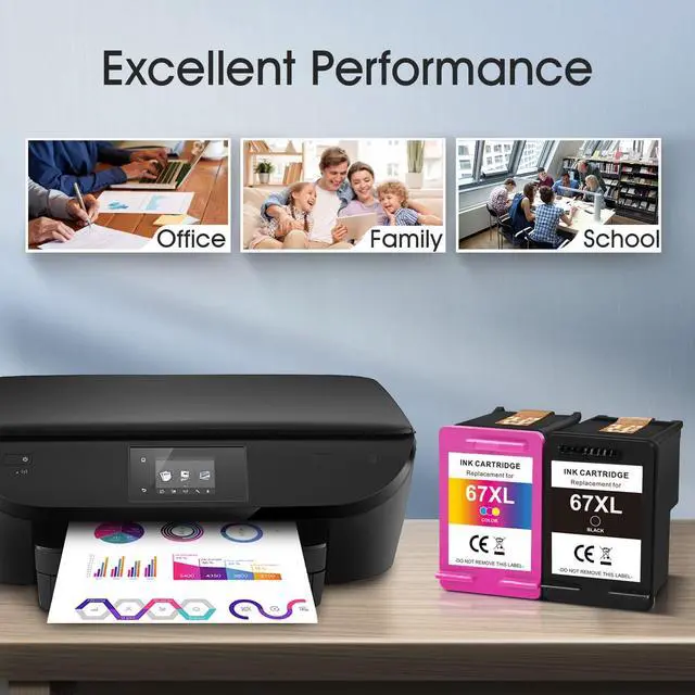 WORK WITH: For HP Ink Cartridges 67XL Use With DeskJet 4100 ink cartridge series: 4100 4100e 4120e 4121e 4122e 4123e 4130e 4132e 4152e 4155e 4158e 4155; DeskJet Plus 4122 4132 4152 4155 4158