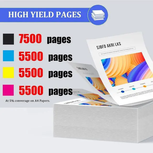 1. Page yields are estimated based only on industry standard 5% coverage, if more than 5% is printed per page, page yield will be significantly reduced.