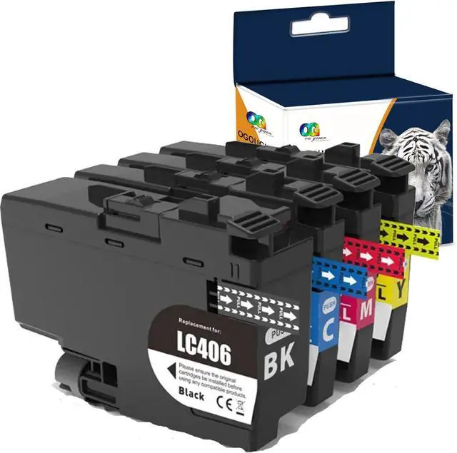 Package Contents: 1 × lc406BK black cartridge, 1 × lc406C cyan cartridge, 1 × lc406Y yellow cartridge, 1 × lc406M magenta cartridge4-Color Pack