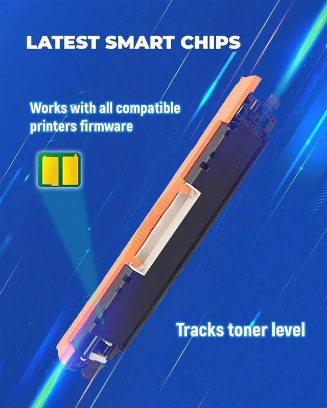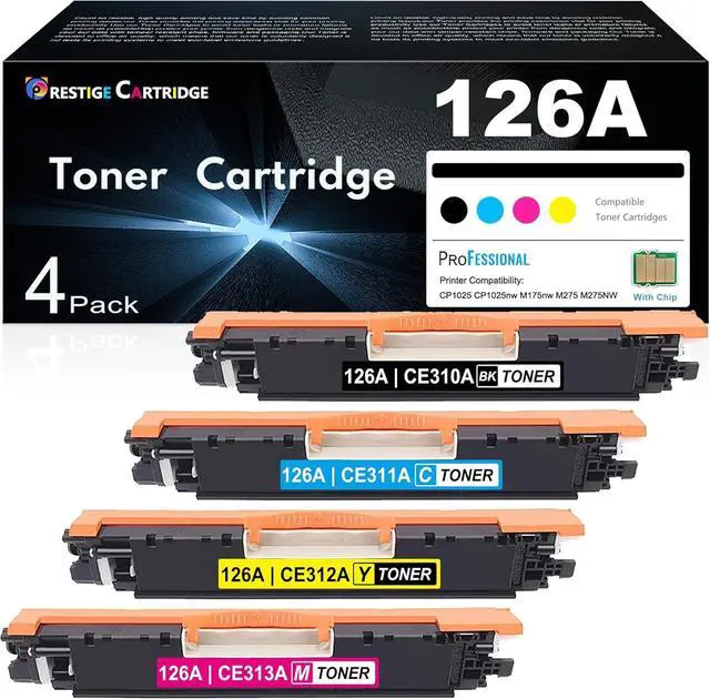 What's in the box: 4-Pack 126A CE310A CE311A CE312A CE313A Toner Cartridges with Chip (Black Cyan, Magenta, Yellow)