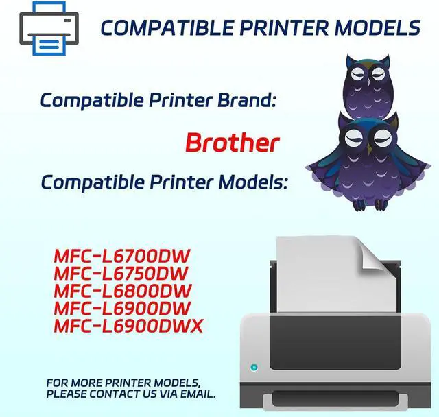 EASY INSTALLATION AND COMPATIBILITY - Our Toner Cartridges are designed to be easily installed in a variety of printers. They are manufactured to match OEM specifications, guaranteeing compatibility with your specific printer model. Compatible with Brother MFC-L6700DW MFC-L6750DW MFC-L6800DW MFC-L6900DW MFC-L6900DWX Printer. FOR MORE PRINTER MODELS, PLEASE CONTACT US VIA EMAIL.