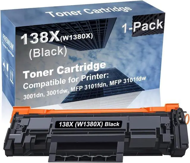 Included: 1 Pack Compatible 138X (W1380X) Black Toner Cartridge. (with Chip)