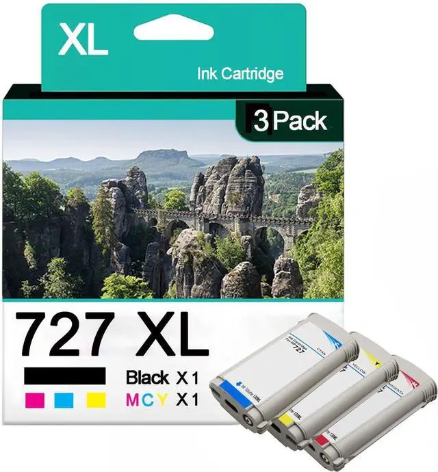 Performance WorkHigher capacity and print more with xl; Up to 300 ML per for HP 727 XL black cartridge,300 ML per for HP 727XL color cartridge