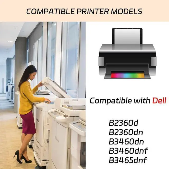 EASY INSTALLATION AND COMPATIBILITY - Our Toner Cartridges are designed to be easily installed in a variety of printers. They are manufactured to match OEM specifications, guaranteeing compatibility with your specific printer model. Compatible with Dell B2360d B2360dn B3460dn B3460dnf B3465dnf Printer.