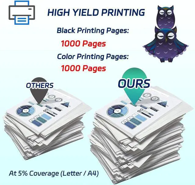 LONG-LASTING DURABILITY - Our high-quality Ink Cartridges are built to last, providing a high page yield to meet your printing needs. You can rely on consistent performance and reliable prints throughout the cartridge's lifespan. Black printed pages (BK/K): 1000 pages. Color printed pages (C/M/Y): 1000 pages.
