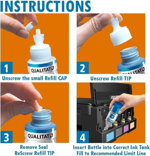 [ -HIGH QUALITY PRINTS- ] -This Epson Compatible Ink is manufactured with High Quality Materials. Peace of mind, No printer head replacement needed. These are original formula inks for top quality prints and helps to extend your printer's life. Never leave your Epson Ecotank without ink.