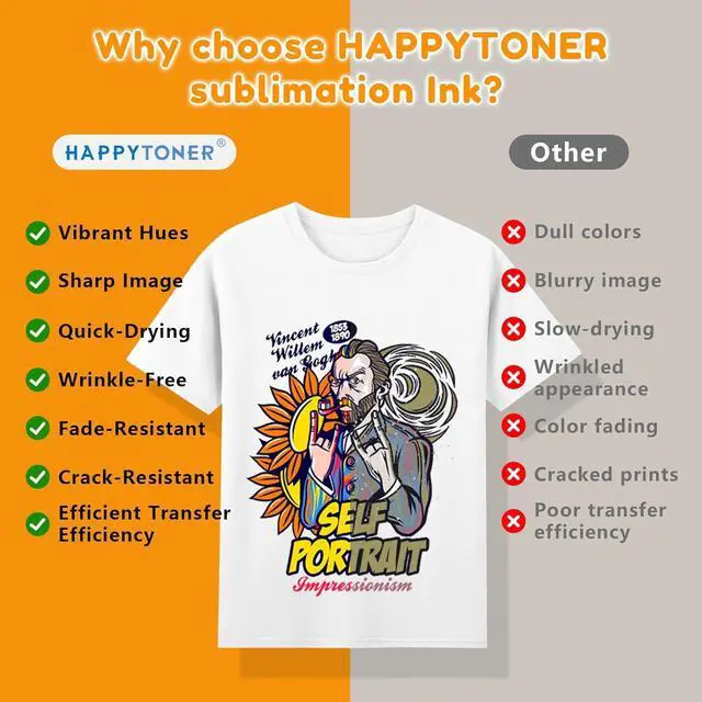 Reliable Performance: The water-based dye sublimation Ink provides high heat transfer printing rate, and produces bright and vivid color, which is in high saturation, good permeability, fast drying, waterproof and no fading.