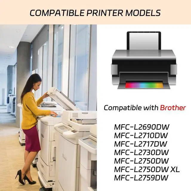 EASY INSTALLATION AND COMPATIBILITY - Our Toner Cartridges are designed to be easily installed in a variety of printers. They are manufactured to match OEM specifications, guaranteeing compatibility with your specific printer model. Compatible with Brother MFC-L2690DW MFC-L2710DW MFC-L2717DW MFC-L2730DW MFC-L2750DW MFC-L2750DW XL MFC-L2759DW Printer.