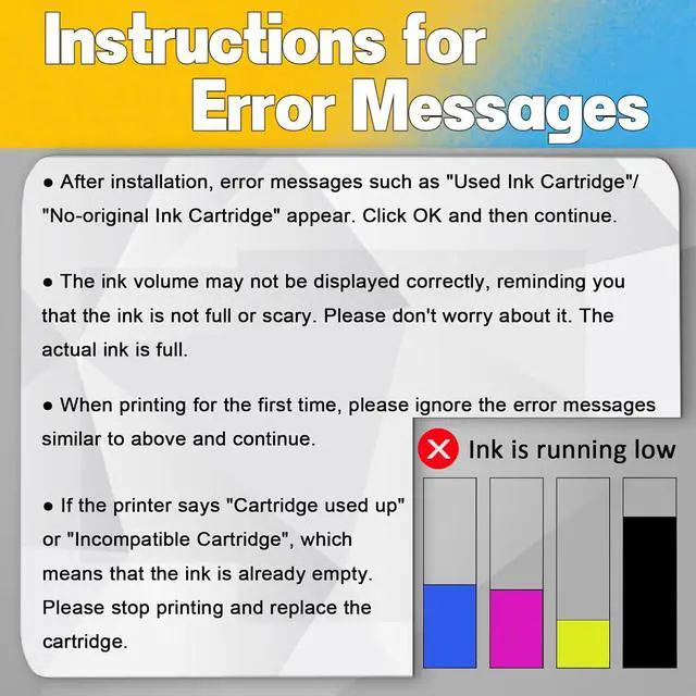 • * Before you place an order, please confirm the printer model and ink cartridge model or contact us by email, we make sure to reply to you within 12 hours!