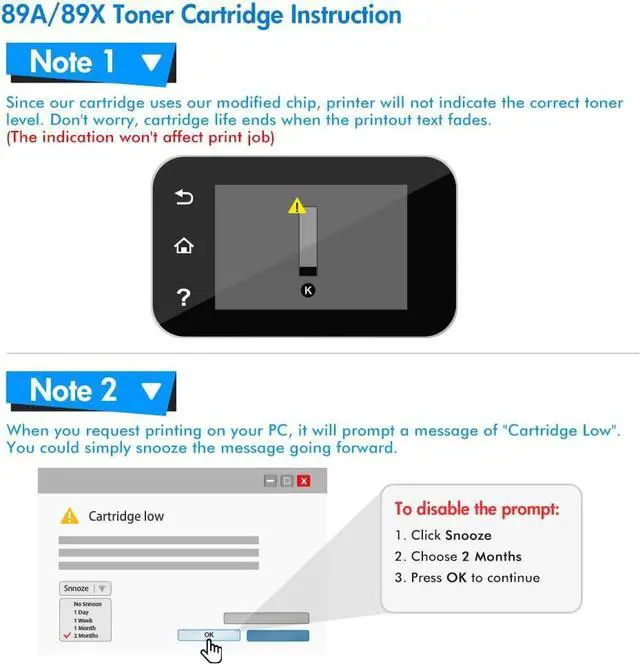 Excellent Performance: The High Yield 89A CF289A toner cartridges deliver superior printing results with vivid colors and clear prints
