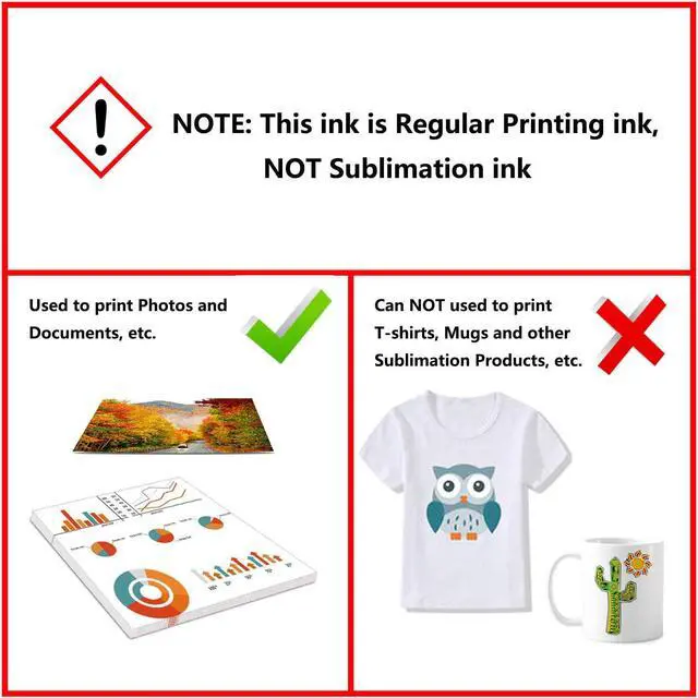 Note: NOT SUBLIMATION INKThis ink is only used for refillable cartridges and CISS (continuous ink supply system). If you are using the original cartridge or disposable cartridge, please do NOT purchase this refill ink, it cannot refill your ink cartridge, and your printer will not work properly with it. (For applicable types of cartridge , please refer to Figure 3)