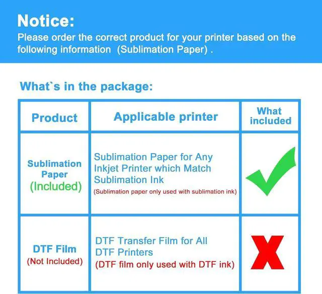 High CompatibilityLCL Sublimation paper works with sublimation ink only and compatible with E, Sawgrass, Ricoh, Brother and other sublimation printers.