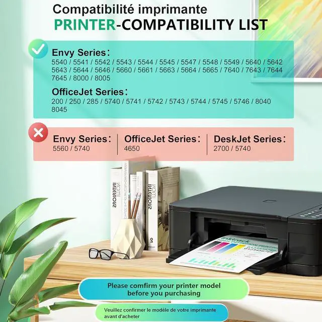 Compatible Printers: ENVY 5540, 5542, 5544, 5545, 5640, 5642, 5643, 5644, 5646, 5660, 5661, 5663, 5664, 5665, 7640, 7644, 7645, 8000, 8005, OfficeJet 200, 250, 5740, 5741, 5742, 5743, 5744, 5745, 5746, 8040, 8045