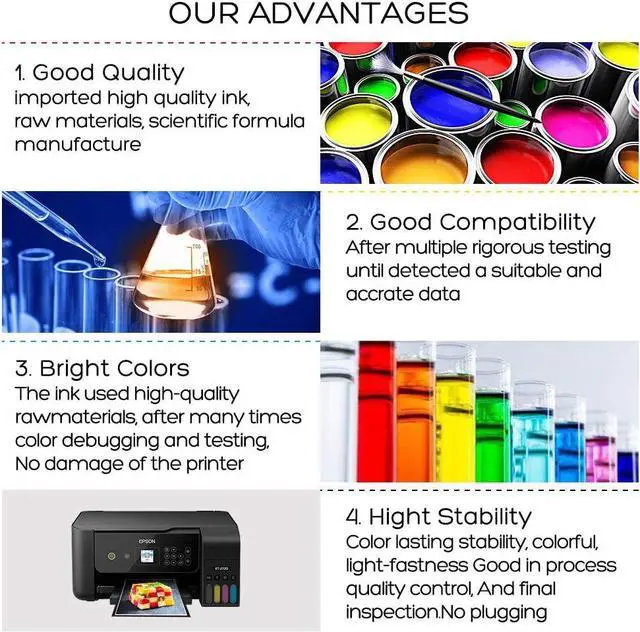 High Quality.Easy to Install and Refill Vibrant Colors & No Fade . 3 layers filtered ink is formulated for heat press transfer printer, No clogging and print smoothly. Anti UV sublimation ink kit has strong stability, Its water resistance and light fastness.ISO 9001 Certified.