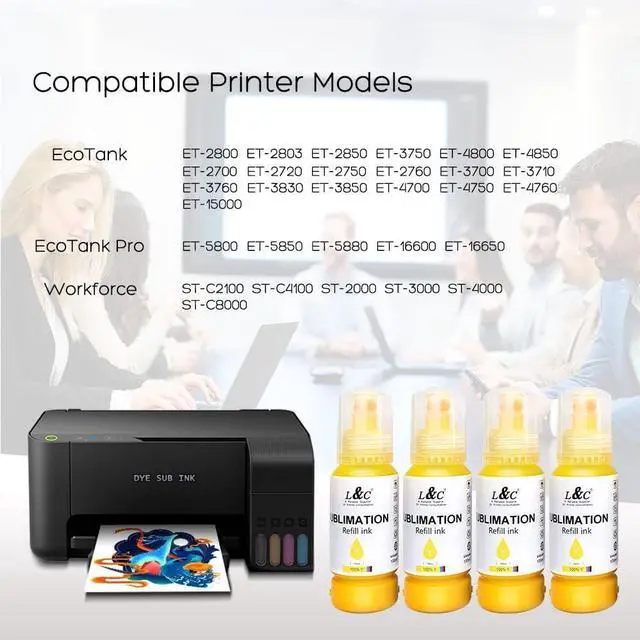 Sublimation Ink Refilled for Epson All Sublimation Printers. High quality sublimation transfer printing ink refills for EPSON WorkForce WF7710 WF7720 WF3640 WF2860 WF2750 WF2650 WF2850 WF3720 WF845 ET2720 ET2750 ET2650 ET2760 ET2550 ET3700 XP440 XP446 XP400 printer.