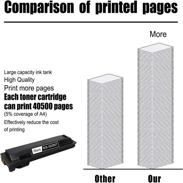 Approximate Page Yield : 40,500 pages per MX-500NT Black toner based on 5% coverage (Letter/A4).