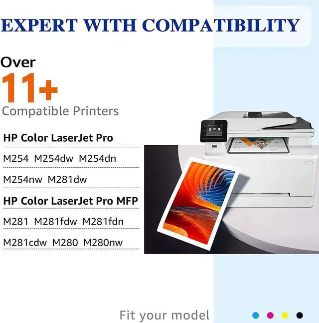 Printer Compatibility: Compatible for HP Color LaserJet Pro MFP M281fdw M281cdw M281dw M280nw M281fdn M281 Toner Printer, for HP Color LaserJet Pro M254dw M254dn M254nw M254 Printer