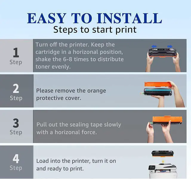 Package Contents: 4 Packs of Compatible Toner Cartridges for HP 202A 202X, 1 x Black CF500A 202A Toner Cartridge, 1 x Cyan CF501A 202A Toner Cartridge, 1x Yellow CF502A 202A Toner Cartridge, 1 x Magenta CF503A 202A Toner Cartridge