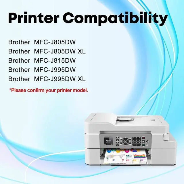 • 100% Compatible With: Brother MFC-J995DW / MFC-J995DW XL / MFC-J815DW/ MFC-J805DW / MFC-J805DW XL INKvestment Tank Wireless Color Inkjet All-in-One Printer.