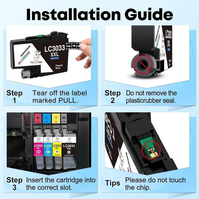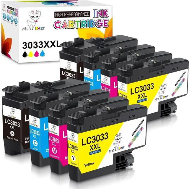 • What you get: 8 packs lc3033 bk/c/m/y ink cartridges brother replacement ink for Brother LC3033 LC3033XXL ink cartridges (2 Black, 2 Cyan, 2 Magenta, 2 Yellow)